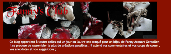 Crée par une collectionneuse des bijoux de Fanny, ce blog « Fanny’s club » invite tous ses fans à poster leurs photos et histoires de bijoux. A voir sur http://fan-de-fanny.blogspot.fr